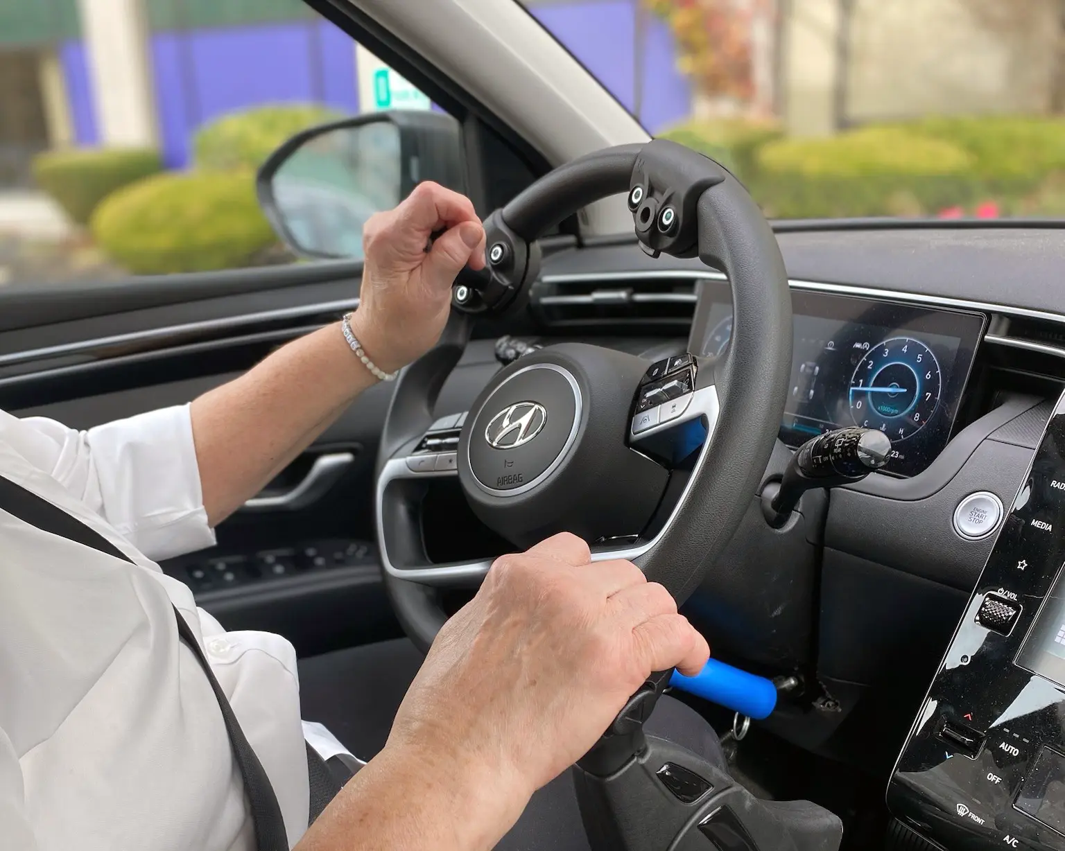 Immediately following the in-clinic portion, clients who are deemed appropriate for adaptive driving training will then participate in a behind-the-wheel assessment/equipment trial. This section of the evaluation allows clients to test various types of equipment and see how they perform in real-world driving conditions. This typically takes 30 minutes-1 hour to complete. Potential recommends for equipment may include: